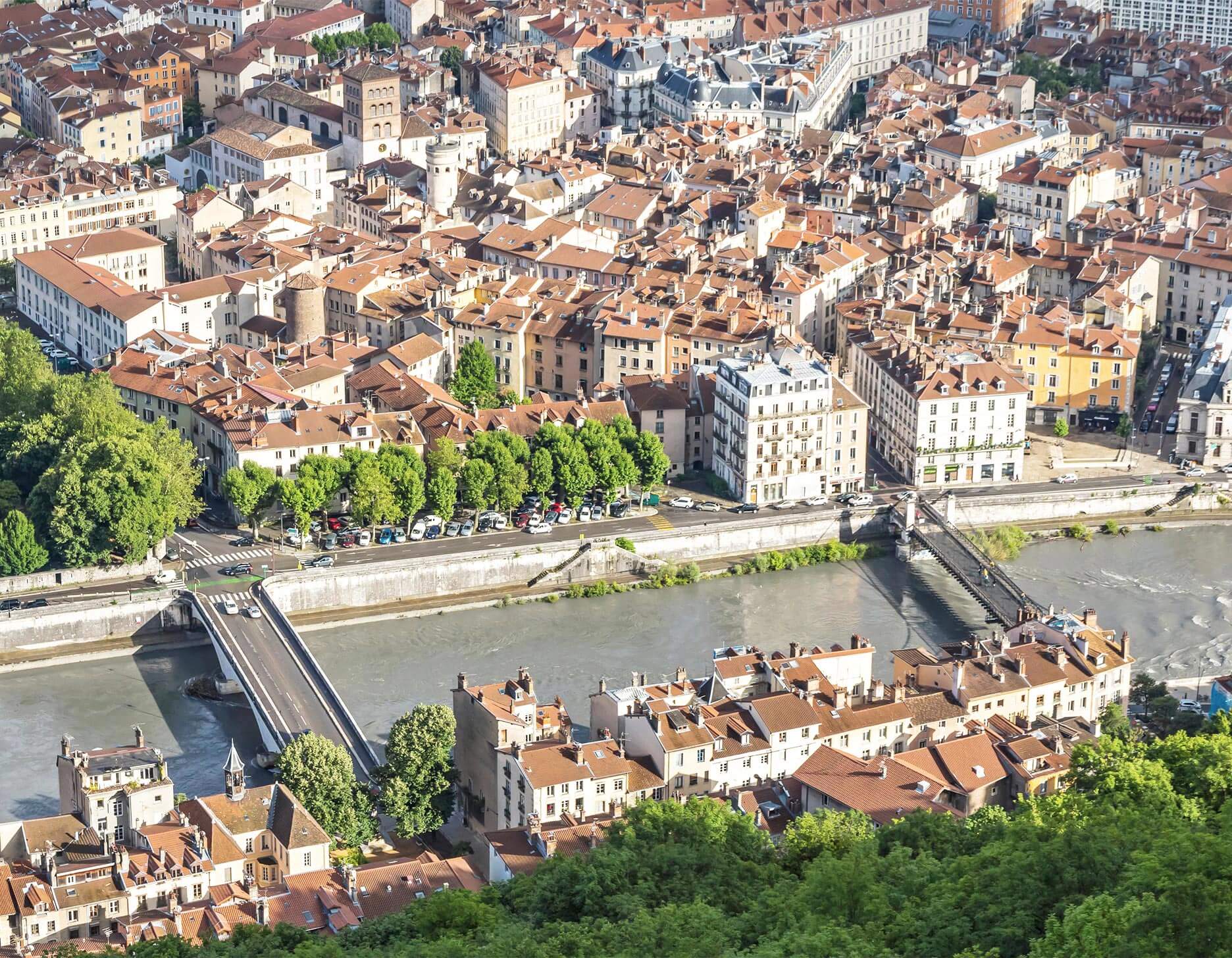 The low-emissions zone of Grenoble includes the central area of the city and is bounded by the rivers Drac and Isere, as well as the roads D1090 and D1532.